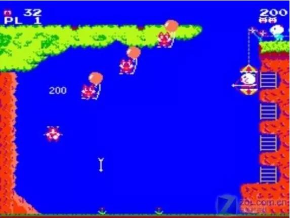 记得第一个玩的卡带游戏是小猪打气球,大灰狼拽着气球往下降落!具体叫什么名字不记得了。