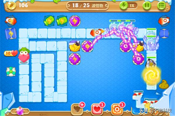 3、后面就是把魔法球升级到顶级增加威力。火箭,冰锥升级到顶级,特别是冰锥可以冻住怪物,很好用。最后清理大怪物。