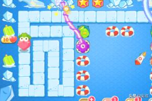 先用魔法球放在两个角落,用于清理周边的冰块,记得先把绿色的雪糕打掉。