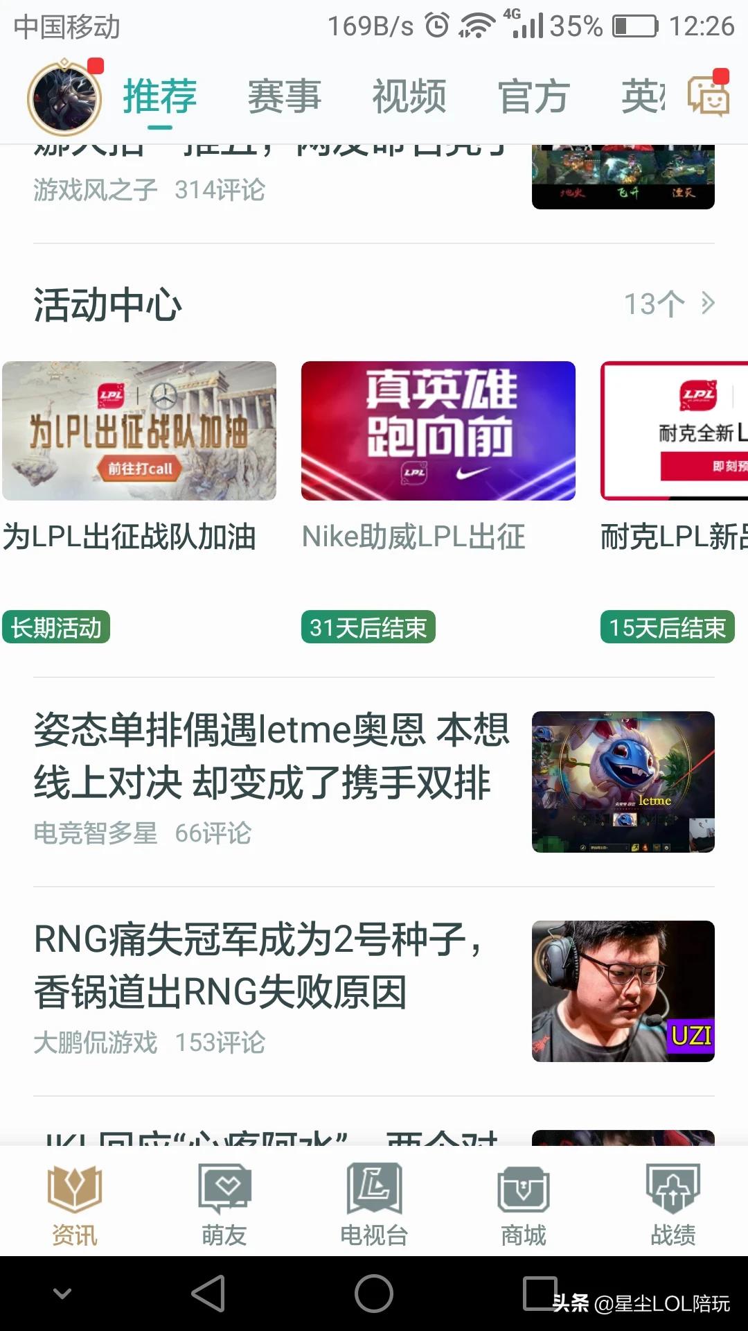 大家可以打开掌上英雄联盟,推荐页面往下拉,就可以看到这个 Nike助威LPL出征 的活动了。