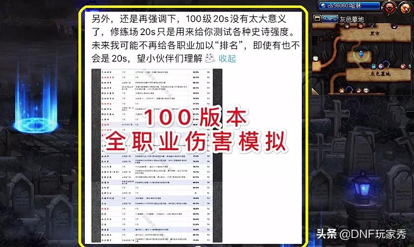 DNF目前共有61个职业,每逢版本更新,职业平衡,必然会有大神数据玩家,模拟计算出全职业20秒打桩数据,然后进行职业排名!100级版本更新后,数据大神“东总”对全职业的打桩伤害,也做了计算,装备模拟是“手搓+恍惚+军神(神话)”搭配,算出来全职业的伤害数据。但是由于100级版本装备搭配多样,不同职业穿戴不同搭配打出的伤害也大不相同,所以并没有给出一个实质性的排名。