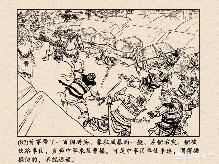 第一,演义里甘宁直接和名将交锋记录不多,但是有几个细节可以说明甘宁武力的强悍:赤壁之战追杀曹操时,甘宁斩杀马延、张顗两将都是只用一刀,曹操听说后“不敢望南夷陵走,拔回马望西便走”居然改道了!