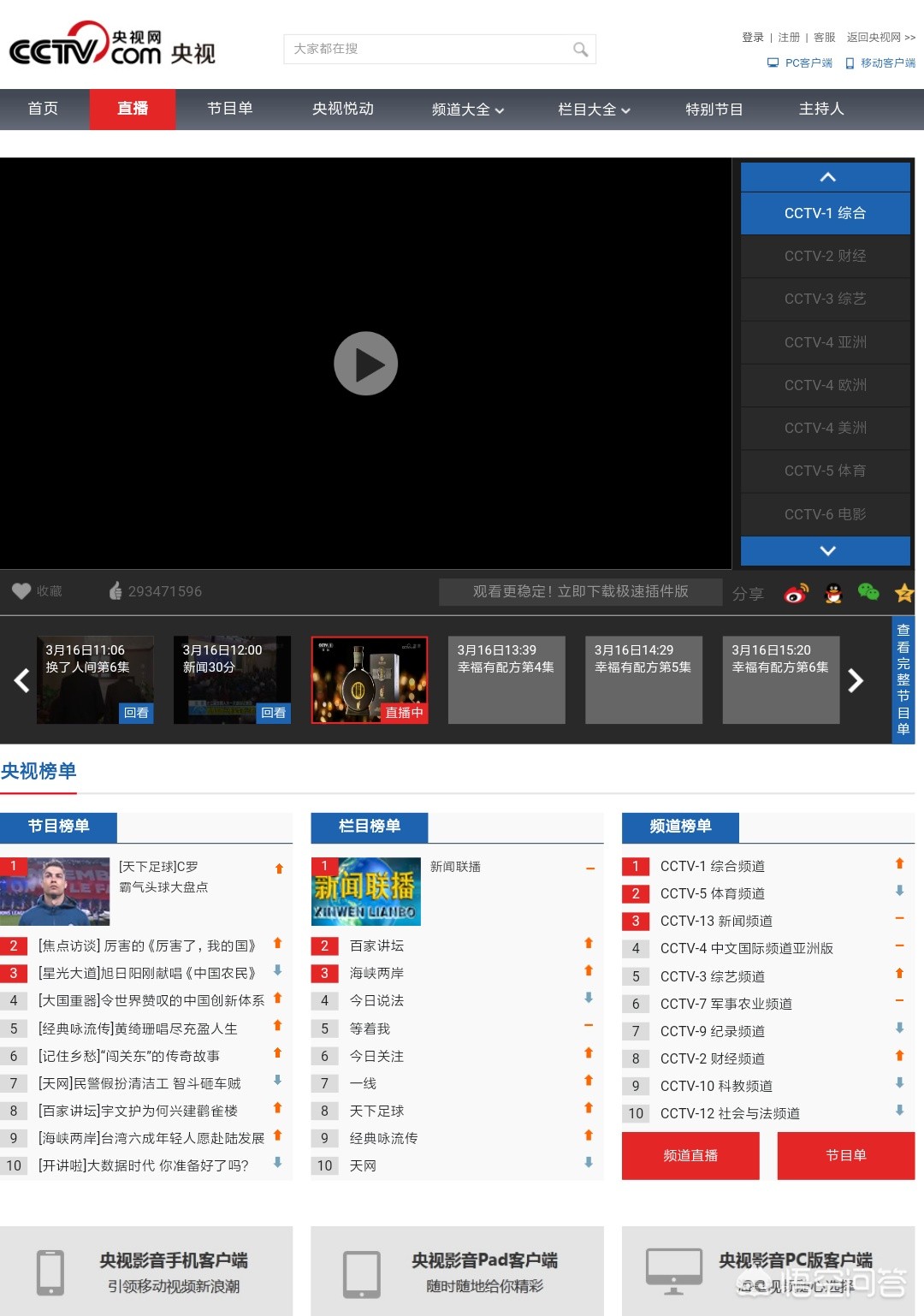 有很多直播软件都可以收看中央电视台的各套节目,最直接的方式就是用电脑或者手机登录央视官网,这里可以观看央视的所有节目。