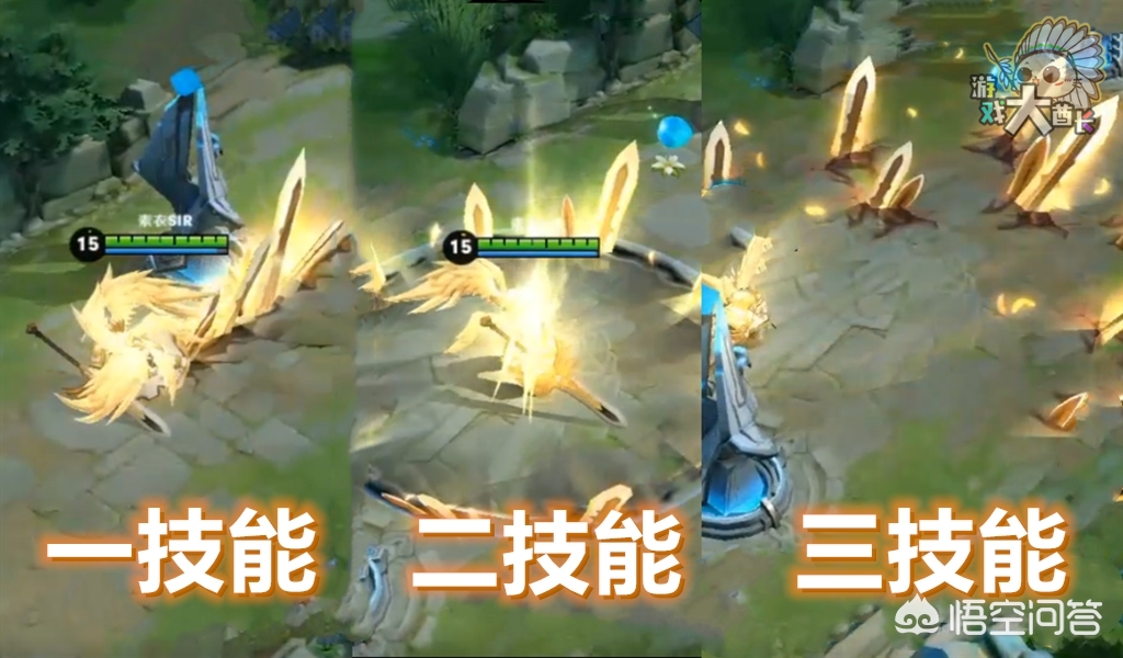 在技能方面依旧以金色为主,一技能地面上会出现几把金色的利剑。