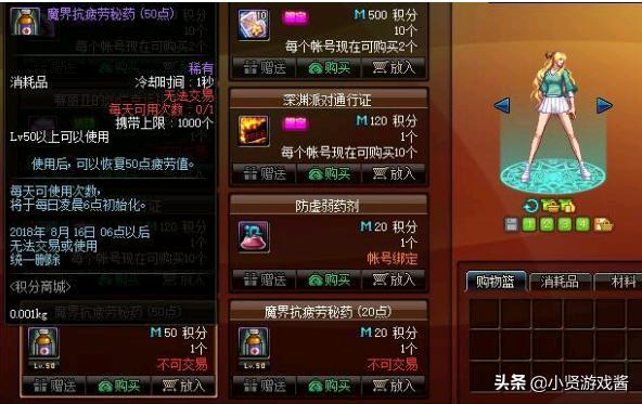 DNF自从4月17日爆料了51礼包之后,紧接着在4月18日也爆料了51的积分商城,在此次的积分商城中实用的道具非常多,比如1000积分兑换的135四维耳环宝珠,800积分兑换的3张+7增幅卷,150积分兑换的智慧引导通行证等等,而在这些道具中也不乏有一些让人恶心的道具,其中疲劳药就是其中之一,为什么这么说呢?
