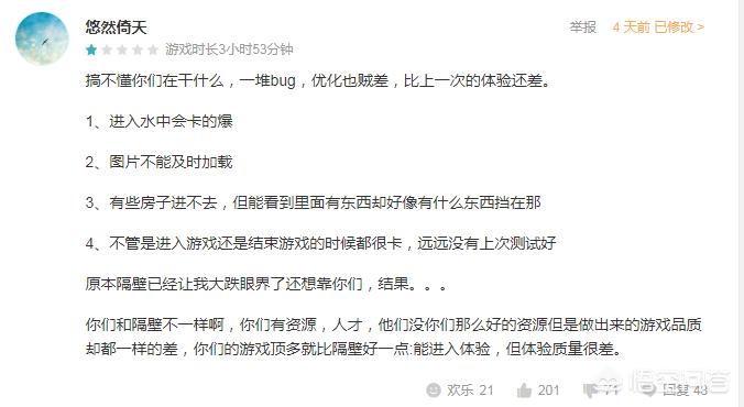 官方在Tap上的宣传视频和宣传图都很漂亮,让人很有玩的欲望,可惜这次的测试版并不能让玩家们满意。整体上来看,测试版确实问题比较多,玩家们反映的问题主要是以下几点: