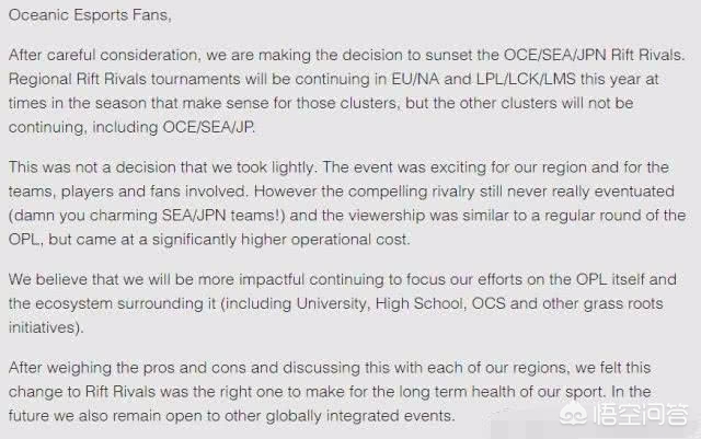 近几年,电竞职业联赛快速发展,LOL职业联赛也越来越具规模,众所周知,除了各大赛区的春、夏两季联赛,拳头每年还会举办MSI季中赛、洲际赛、全明星赛和S系列总决赛等全球性赛事,但是对于个别外卡赛区,今年可能不会有洲际赛了。近日,英雄联盟官方发布一则声明,内容中提到今年的大洋洲、东南亚和日本的洲际赛,因为收视率较低,运营成本压力过大等原因,已经取消了今年的洲际赛,不过常规五大赛区的洲际赛依然会进行,分别是EU、NA、LPL、LCK和LMS。