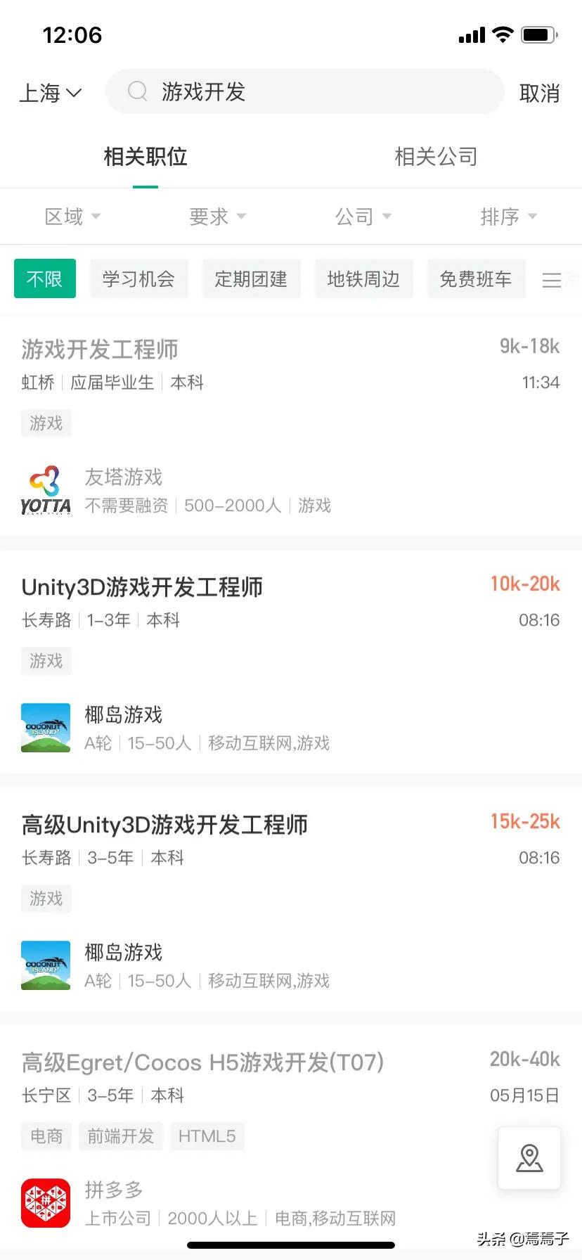如果去招聘网站上搜索游戏开发岗位,排在前列的需求大都是:
