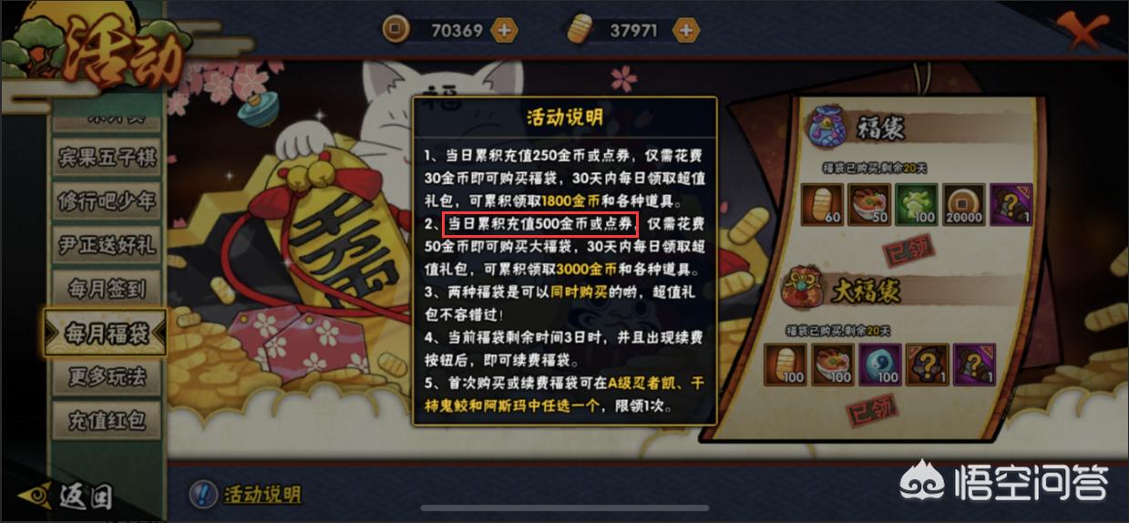 很多时候,一些玩家打算续费月卡的时候,我都会提醒一下,尽量用充值点券来激活,这样是要比用金币激活更有性价比,再加上现在点券忍者的强度逐渐提升,提前储存一点是没有坏处的。而金币方面,每天活跃度宝箱、每周的20胜都可以攒出大量的金币,单纯氪金50元给的500个金币跟500个点券一对比,差距就出来了。