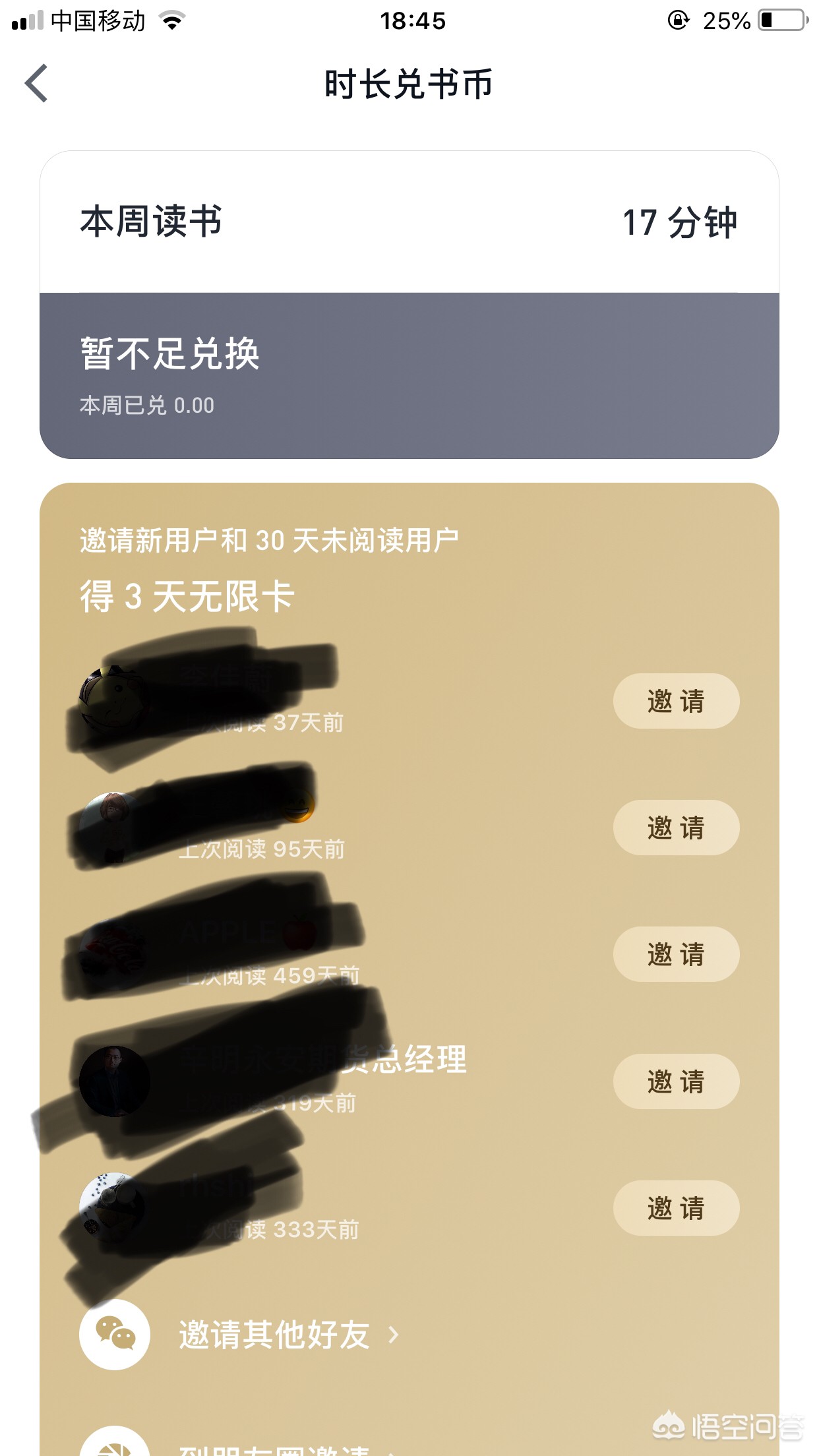 2.分享。分享给自己的朋友,他们通过你的分享加入微信读书,那么你就可以得到相应的无限畅读天数。