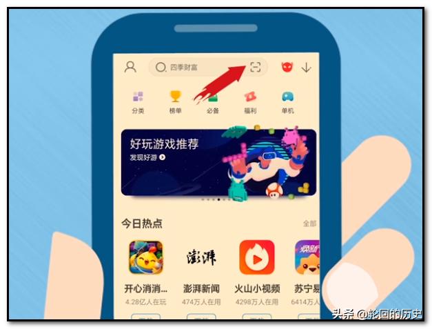5、进入软件后,点击顶部的扫一扫按钮,如下图红色箭头所指。