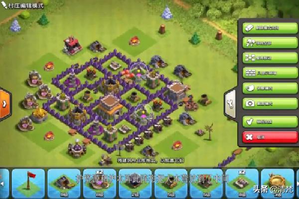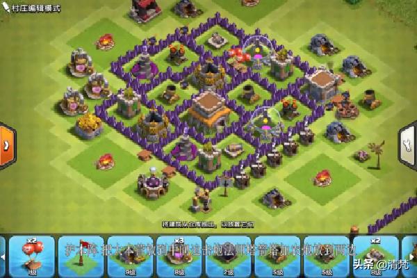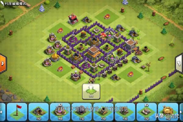 1.护本阵,把大本营放到中间,破击炮、法师塔、箭塔加农炮放到两边,有效防止别人攻打自己的大本营。