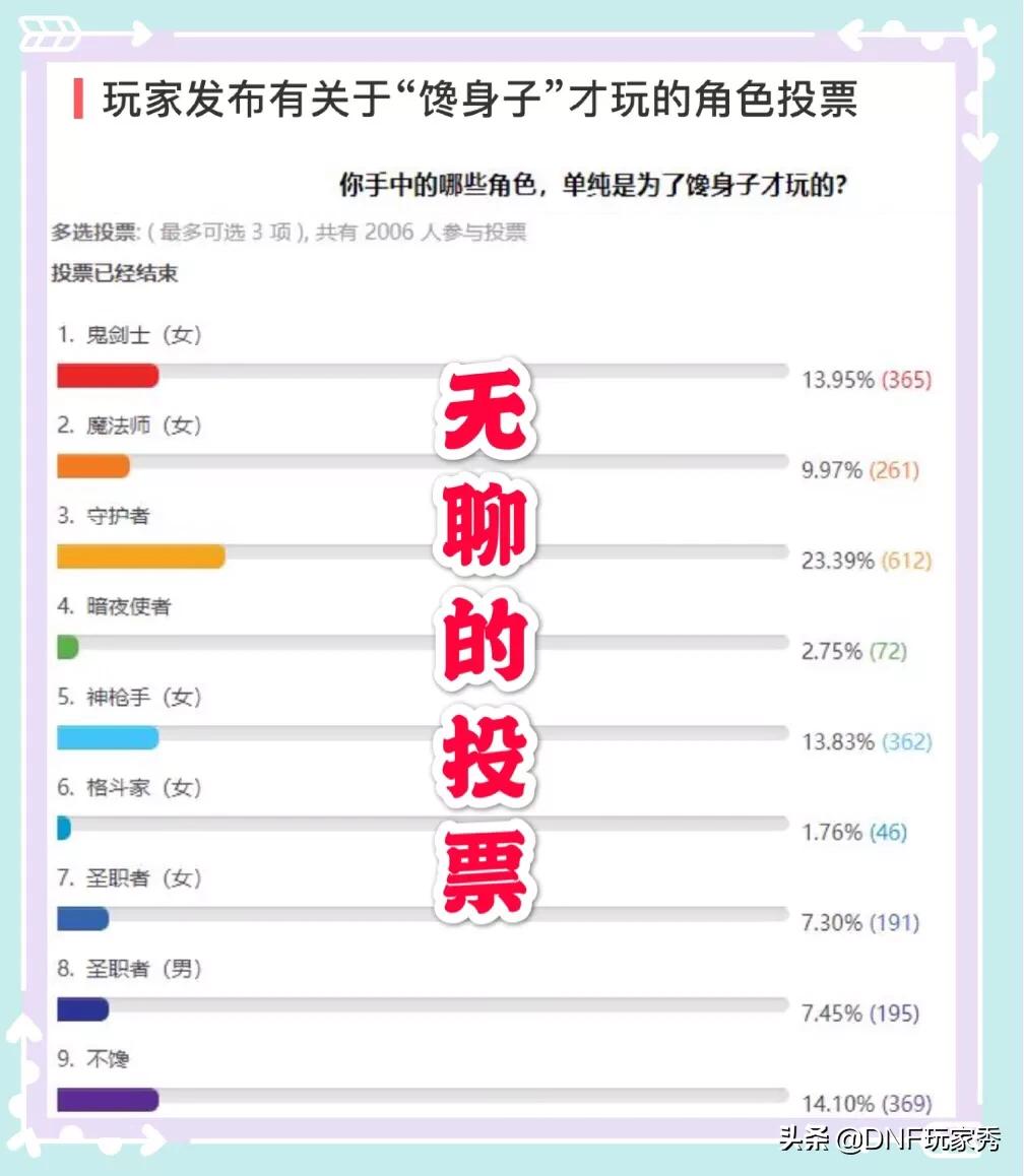 DNF玩家发布关于“馋身子”才玩的角色投票,其中守护者排第一,女鬼剑排第三,如何