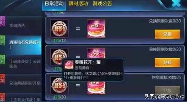 这种获得碎片的方法可以一天获得十几块,它就是消耗钻石兑换皮肤礼包,这种活动基本每个赛季都会有,特别是新赛季不久。所以新赛季获得的钻石不要浪费在钻石夺定和抽取铭文上了。