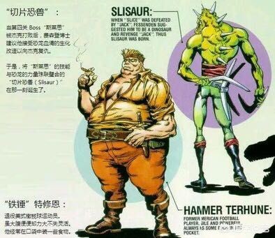 这货是个失败的改造人。开始是人形,击败之后会变异成恐龙。最难缠的是他的“铁头功”,新手由于摸索不到规律,经常就被他撞死。