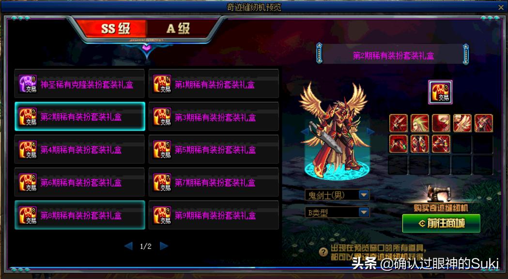 这几天上线游戏时都会看到有一个新的骗氪活动,没错那就是奇迹缝纫机,我们可以简单认作为开魔盒的同理,但它比魔盒的奖励更少却更贵。“奇迹线团”相当于魔盒为基础的道具,产出的地方在NPC达芙妮处分解时装,或者商城1500点券一个,需要消耗“奇迹缝纫机”才可开启获得奖励,奇迹缝纫机就相当于魔锤,一个缝纫机消耗两个线团,随机获得某一件时装的部位,有几率会开出SS级礼盒(往年的天空套)或A级礼盒(往年的节日时装),最主要这些礼盒都是可交易一次能卖钱。