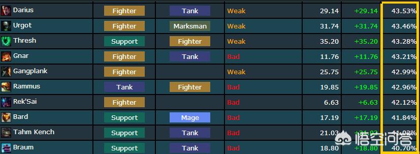 希维尔最强没啥争议,但胜率垫底的可不是雷克顿,而是我们的暖心辅助布隆大叔。
