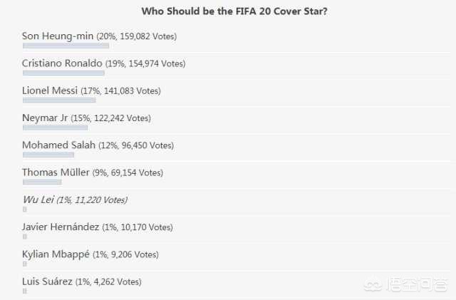 对于FIFA2020封面球星投票活动,个人最大的疑问就是为什么武磊没有排名第一,这跟社交媒体上铺天盖地的“武磊吹”相比有些不太正常。