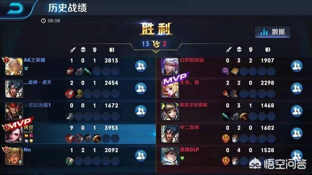 我们可以看到这张图比较简单,这个图片的底色全部为黑色,界面也是游戏结束的数据图,在那个时候就能看到战绩以外的数据,还有就是游戏的时间,我们也是能够看到的,但是实际游戏打了多长时间却没有显示,我们可以从这张图里面看到那个时候大部分的英雄头像还是没有变化的,我们可以看到,现在的妲己和那个时候的妲己不太一样了,有没有不认识的呢? 我们从这个图里面可以看到,