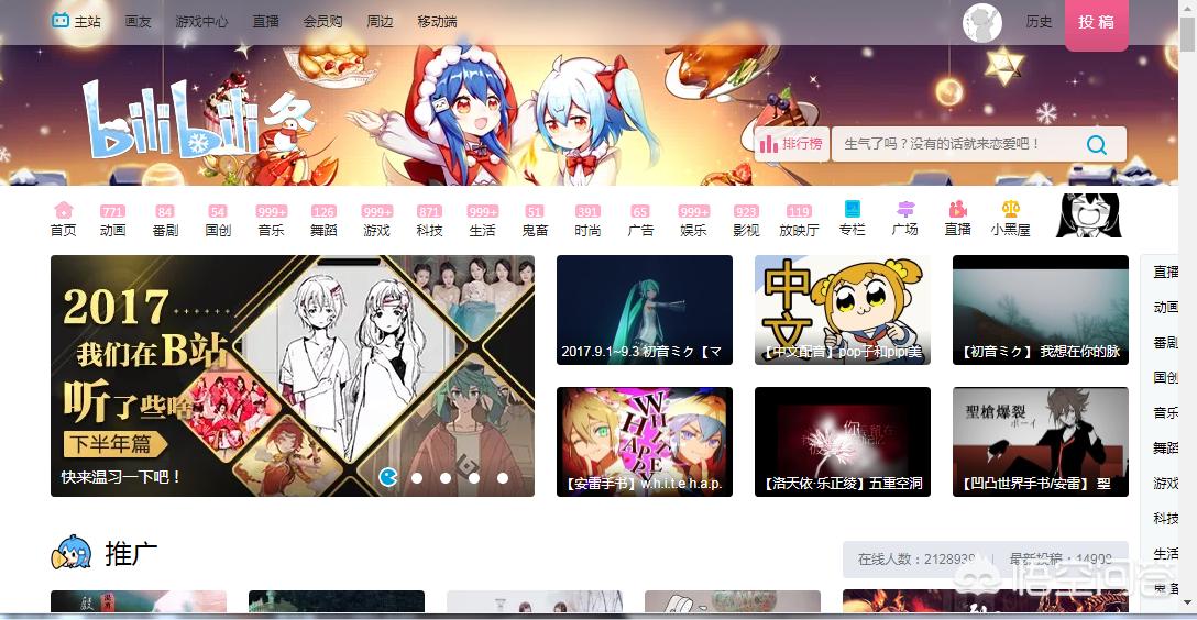 首先是bilibili,目前最受欢迎的动漫二次元网站,里面不仅有动漫还有很多UP主发的各种小视频,可看性比较好,我自己也经常浏览,最关键的是,里面没有广告!!没有广告!!没有广告!!,看过视频的人应该都被各种贪玩蓝月,三十六计,小智传奇,盗墓笔记的游戏广告,看的生活不能自理(我已经被洗脑了),(B站的无广告,深的民心,东静电视要求B站插入商业广告,B站拒绝,并将其37部番剧强制下架,我无条件拥护)