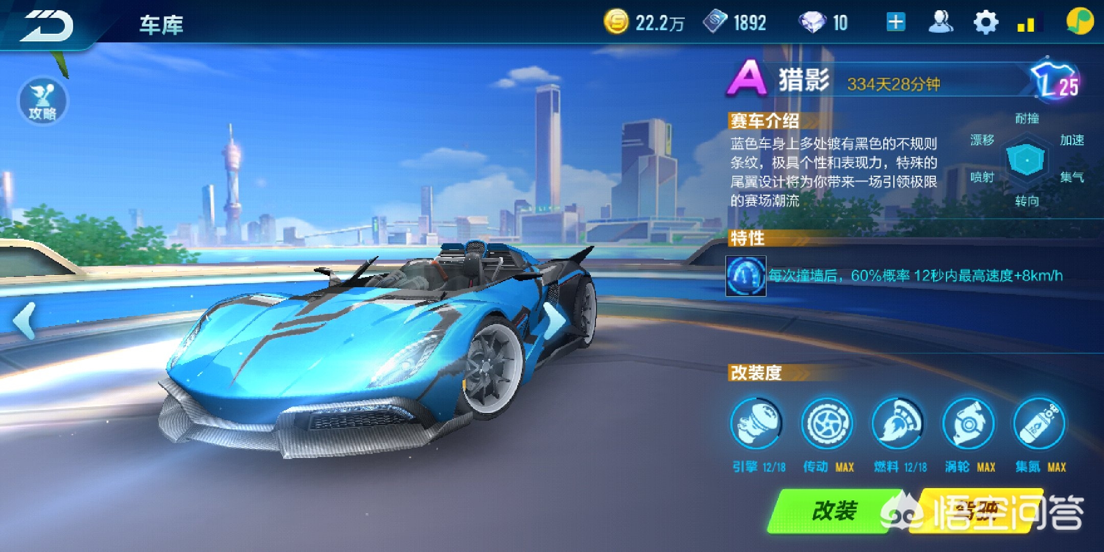 特性:起步喷时长+2秒,起步立即获得30%集气且35秒内小喷动力提升10%。