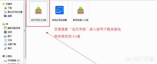 在U盘中找到当贝市场的apk软件,点击该软件,按照提示完成安装;