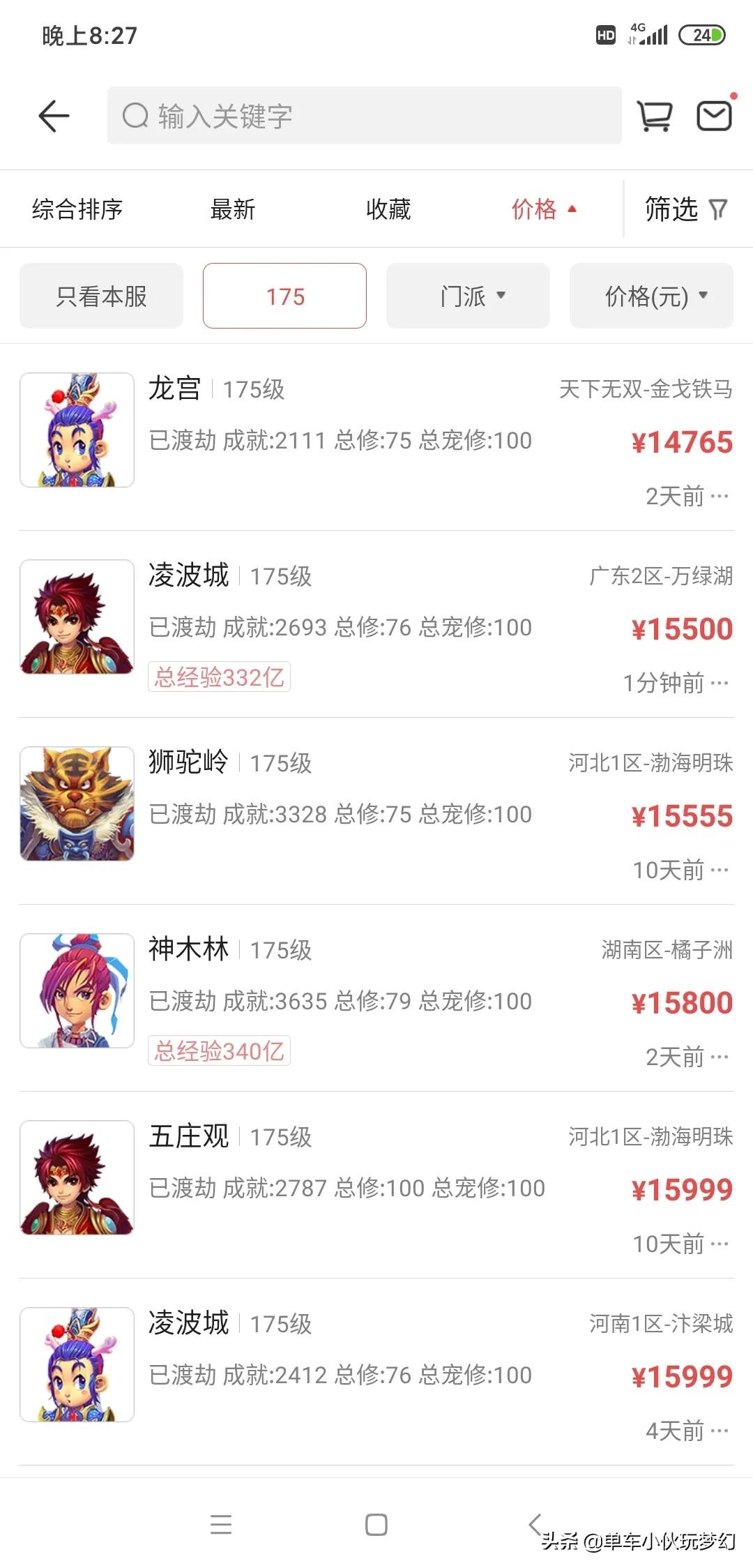 首先在选择等级和门派时,应该以175龙宫为主,一方面175是目前最高等级,另一方面龙宫独特的秒7机制给予了非常大的牟利机会。首先说号本身的价值,一个175级满级号,龙附等级180级的角色大概需要6000块钱左右,日常的点卡消耗完全可以通过卖伤害F来解决,一张186级伤害符5W,周末卖8W8也十分抢手,体力的话学学打造、炼金、裁缝或者是剧情技能合宝石,通过体活变现就可以保证每日的点卡消耗。