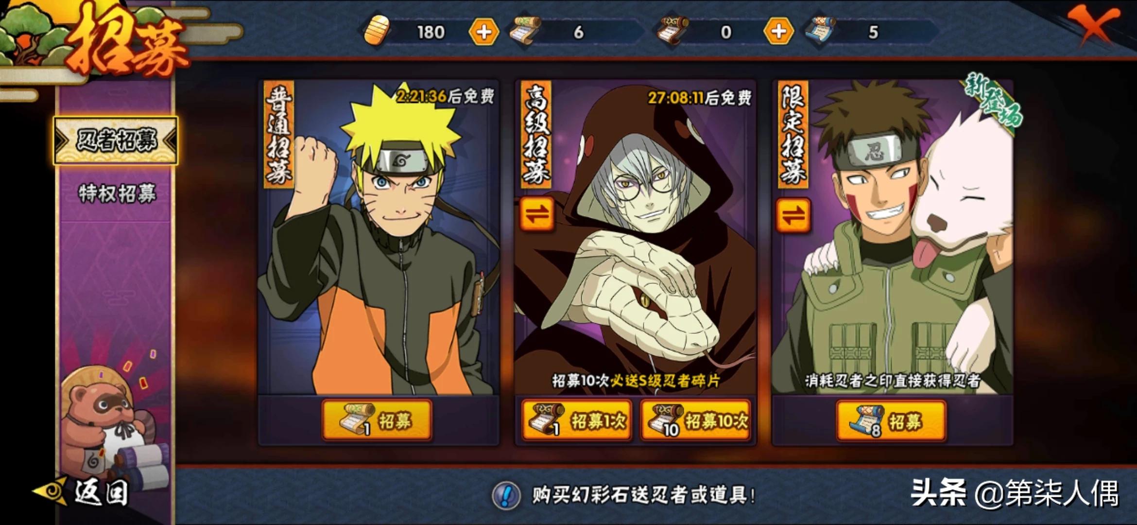 我们就可以用攒下的金币抽取自己心仪的忍者了!攒金币抽S级忍者,一般情况下都会顺便抽出高招A忍的哦