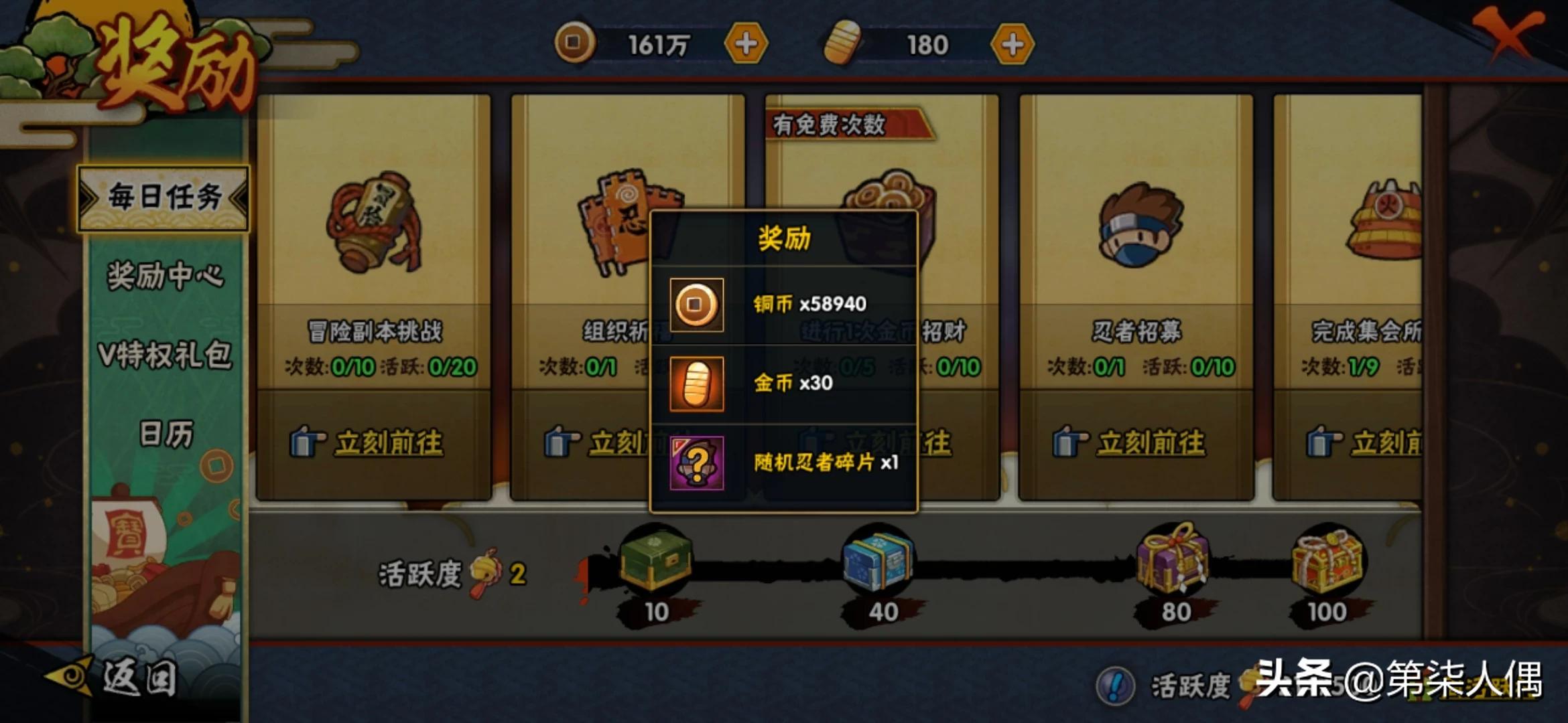 活跃度奖励:每天的“每日任务”做满,开活跃宝箱能得到固定的金币奖励。