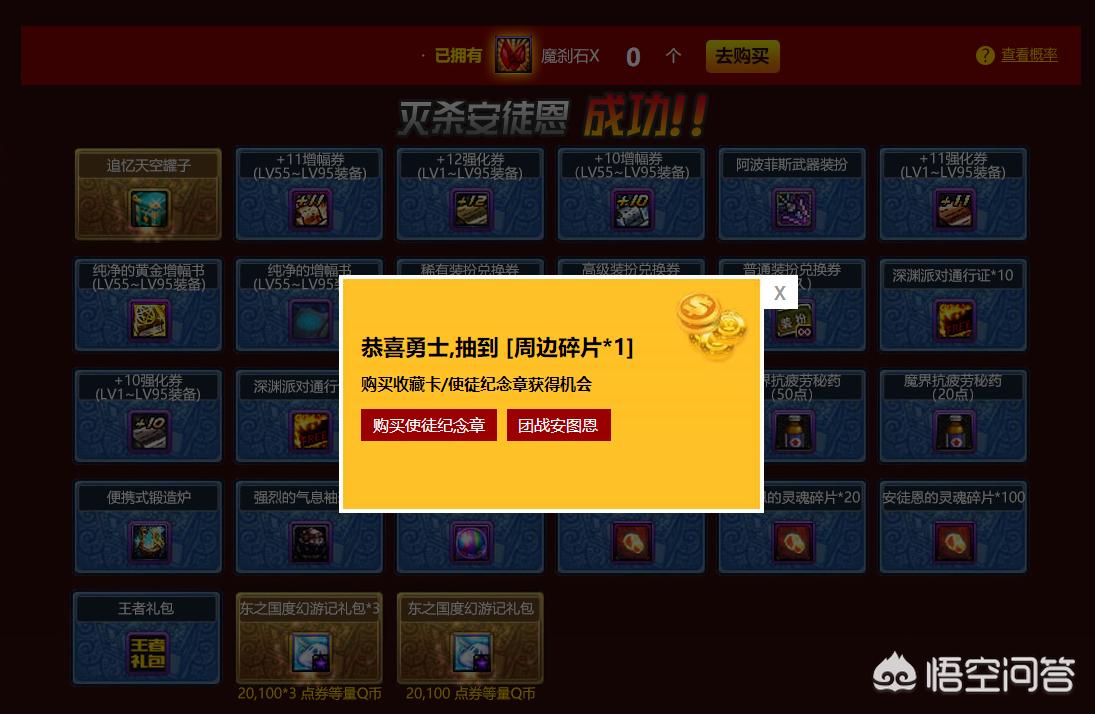 不过,当玩家点进去后会发现,这其实就是抽奖活动,只不过是换个名字罢了,至于追忆安图恩,就是换个抽奖玩法而已。玩法很简单,一个魔刹石参与一次,而一个魔刹石就是1块钱,10次就是10快。