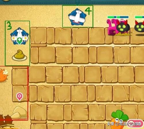 3、在位置3建一架飞机和便便(把飞机升到顶级,便便不用升级,以后增加的便便均不升级),把红框内的道具打掉。在位置4建一架飞机,升到顶级。