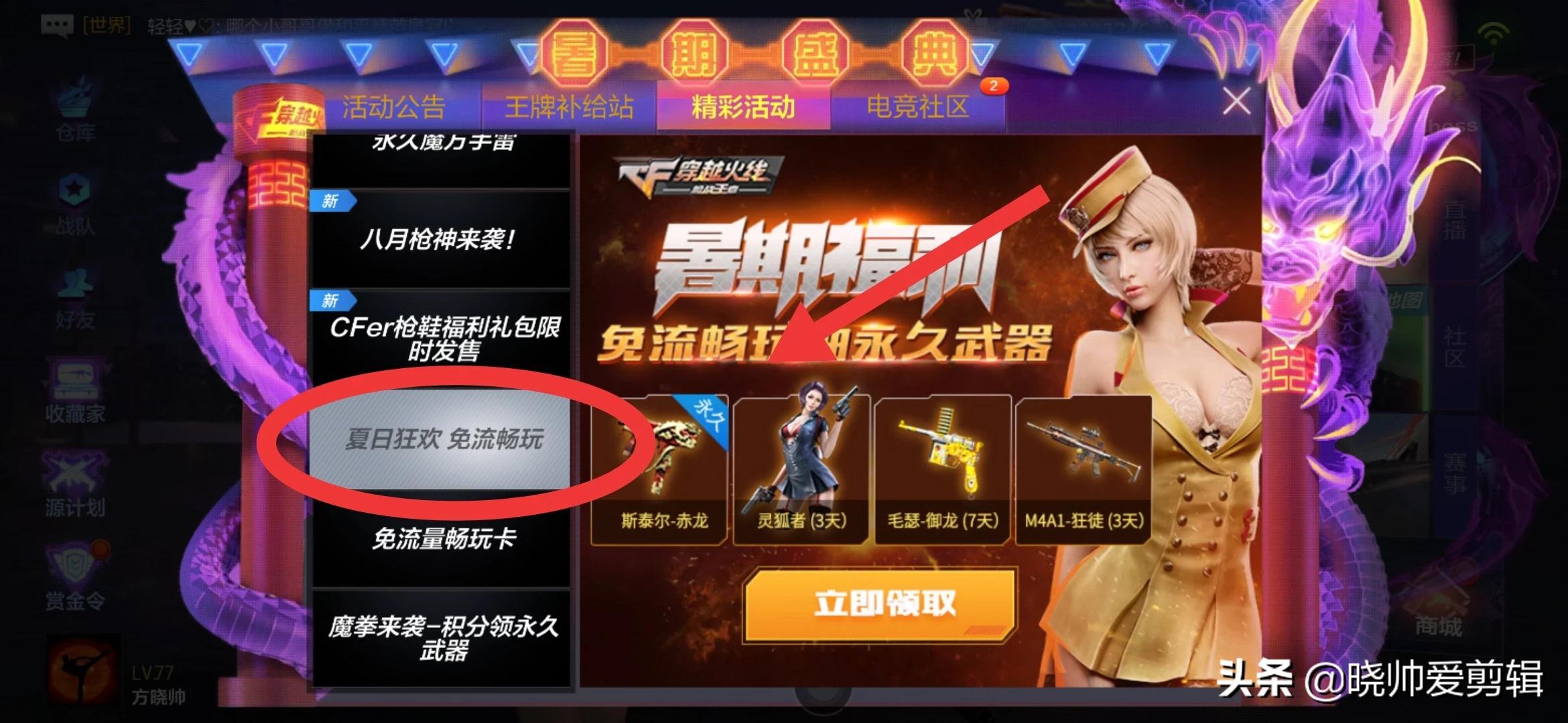 第六个:夏日狂欢免流畅玩,如图六所示首先点开精彩活动就会出现夏日狂欢免流畅玩,这个活动,我们输入手机号就可以领取属于自己的专属礼包,还可以抽取永久武器。