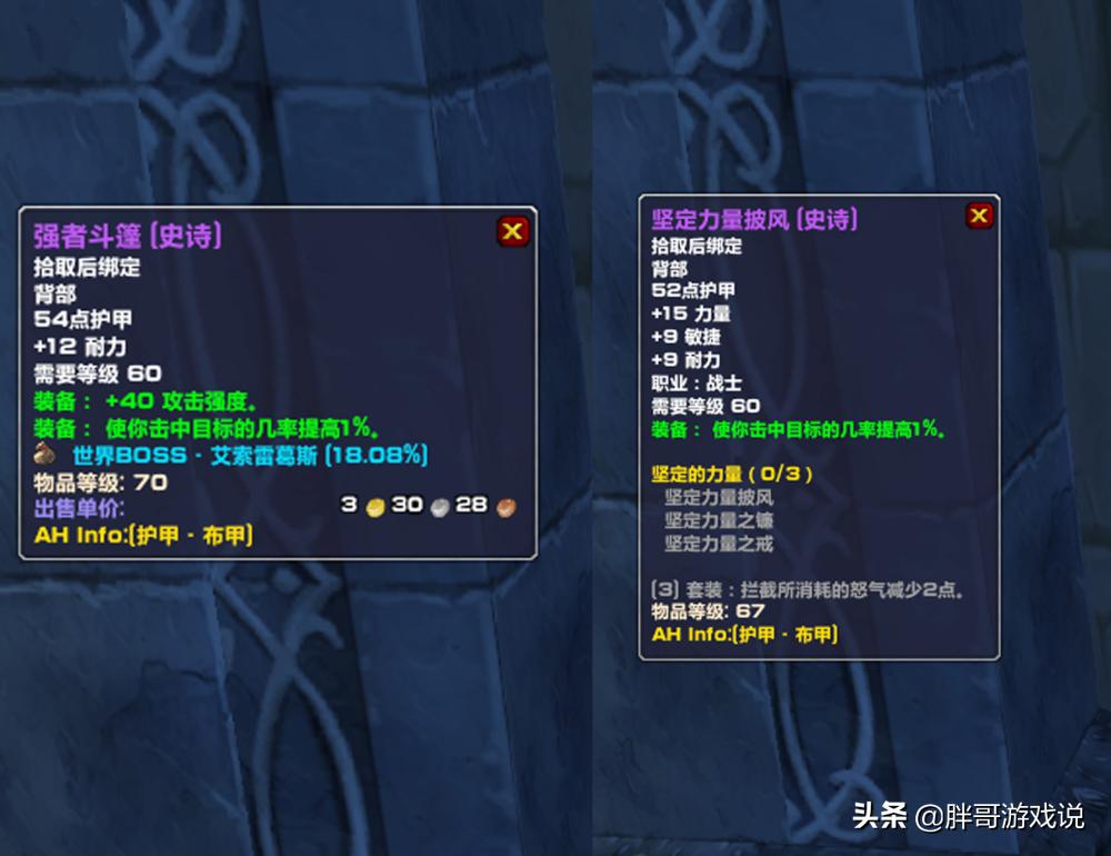 当然,上面的装备虽然堪比BWL中的掉落,却显然无法媲美同时期开放的安其拉副本掉落,因此只是作为备用选择,如果你追求高端,还是去安其拉拿装备比较好,如果你对极品装备的追求并没有那么极致,那么这些废墟装备就足以带入NAXX。每日分享魔兽世界攻略、技巧、黑科技等最新原创资讯,记得关注胖哥哦。