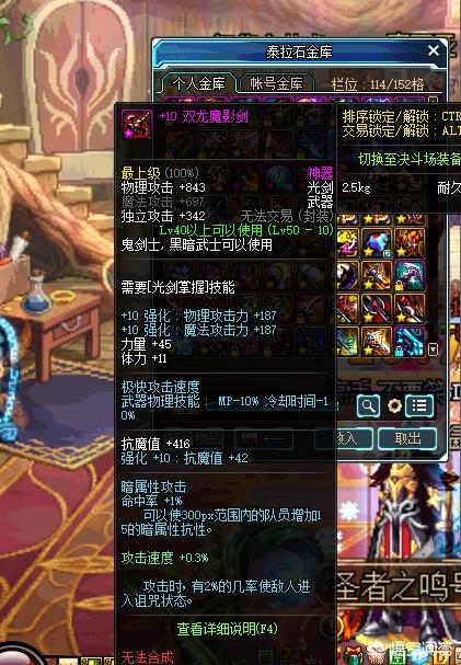 武器的话给这把让无数人折腰的无影剑,当初的小无影只有两种方式获得,一个是深渊爆出,当时的南门和绿都是爆的最多的地方。另外一种就是用灵魂在歌兰蒂斯那里去兑换,分解多个SS来兑换一个无影。当初很多人都去卡SS,这里的卡SS就是故意分解SS装备,然后去投诉说自己被盗号,系统会返还你SS。例如需要650个狗眼,你只需要分解一半武器,然后找回再分解,当然也有失败的 - -