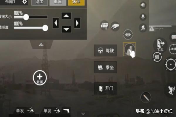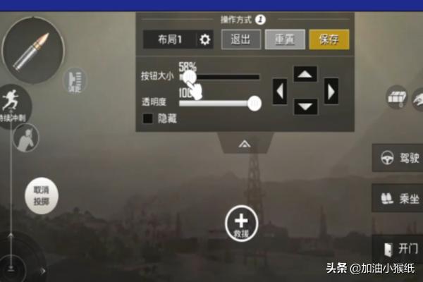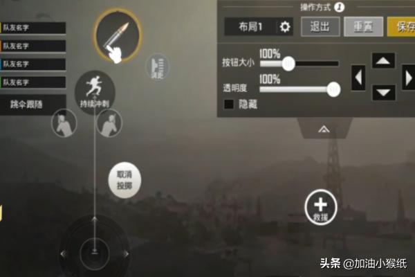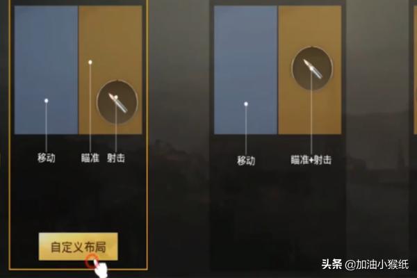 4、进入到按键布局设置界面中先将左边的开枪键移动至左上角,调整一下开枪键的按钮大小。