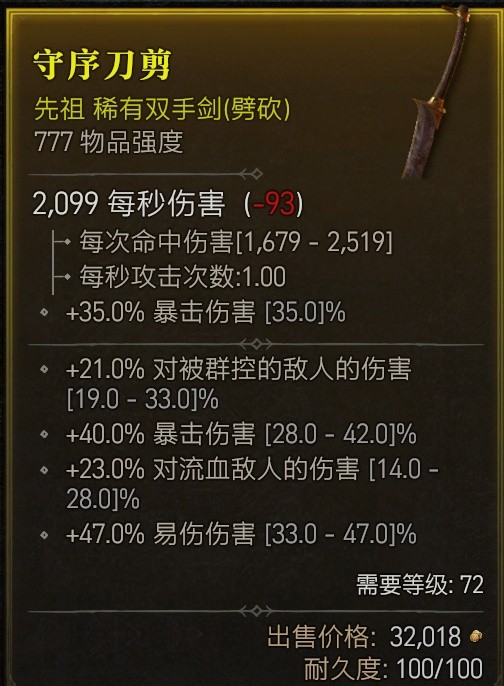 高ROLL双手斧、可以把第一个词条洗出易伤
