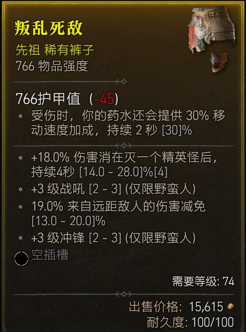 极品裤子:击杀精英4S增伤、战吼等级、减伤