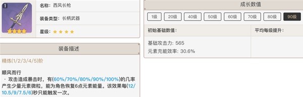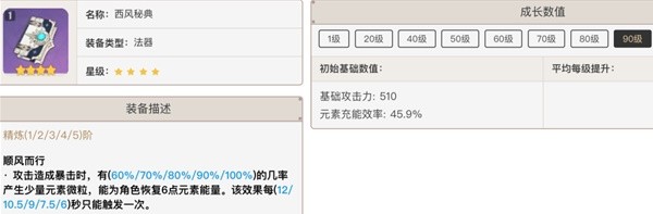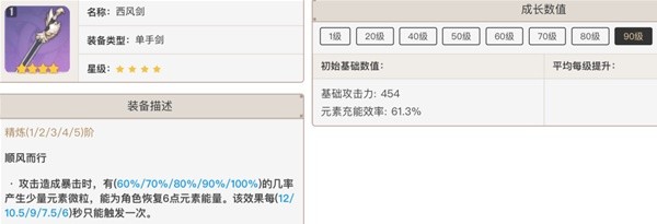 武器效果也是西风系列最保值的地方,精五效果是6秒可触发一次暴击后100%产生6点能量!接下来我们把盘点一下五把西风武器都适用于哪些角色: