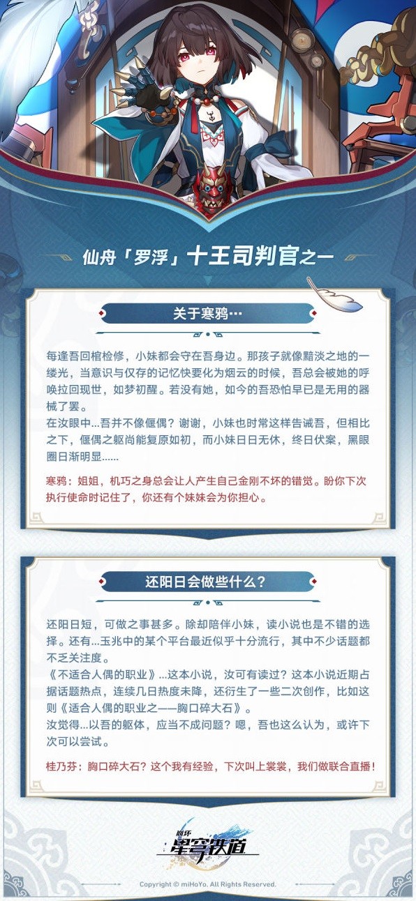 《崩坏:星穹铁道》雪衣技能介绍 2023-12-24 14:30:13 大中小 《崩坏星穹铁道》在1.6版本将会加入3个新角色,其中雪衣的技能效果是怎样的呢,想要了解的玩家请看下面“崩坏星穹铁道”带来的《崩坏星穹铁道》雪衣技能介绍,希望能够帮助大家。 全文查看