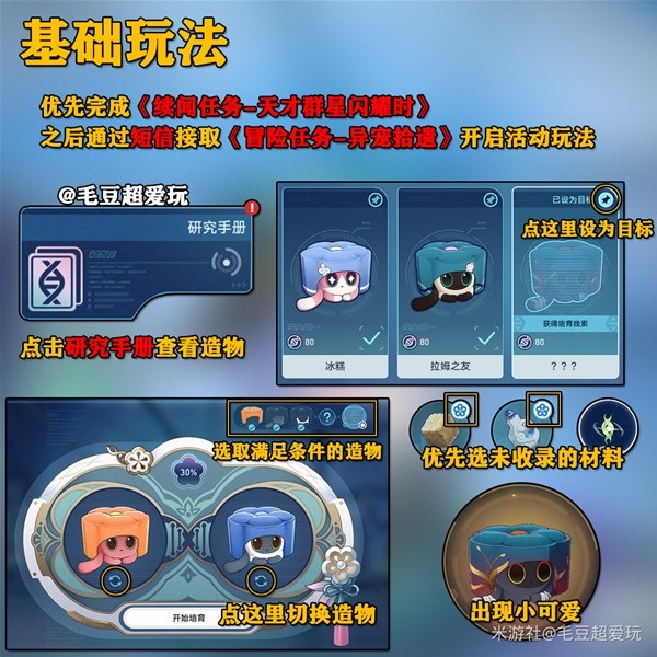 《崩坏星穹铁道》异宠拾遗活动中玩家可以培育可爱的造物,其中有一些是稀有造物,那么稀有造物的培育配方是什么,又该怎么培育出隐藏造物克拉拉呢?请看下面由“毛豆超爱玩”带来的《崩坏星穹铁道》异宠拾遗稀有造物培育攻略,希望对大家有用。