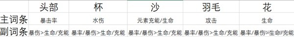 2-6命可选2任意生命+2任意水伤,提高战技元素爆发和破局矢伤害。