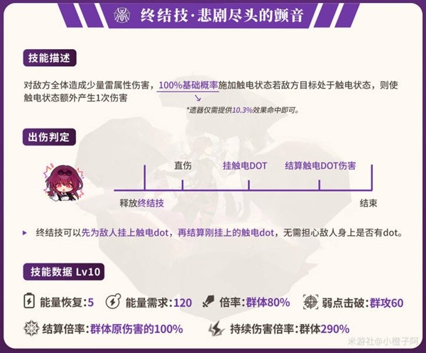 ①群体dot触发器,终结技不仅触电dot倍率高,并且dot结算伤害百分比也是比战技相对高的。