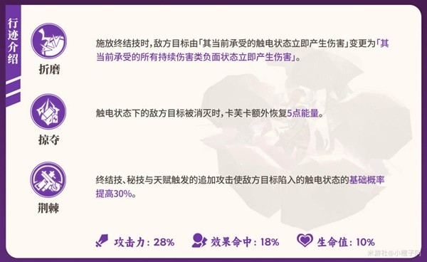 ②卡芙卡的终结技触电倍率给得很高(10级290%),而且挂上的条件很宽泛(秘技/天赋/终结技都能挂),在此基础上战技/终结技都能主动结算提前出伤,自身循环流畅。