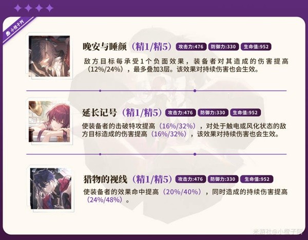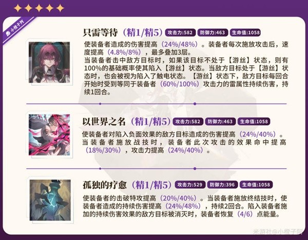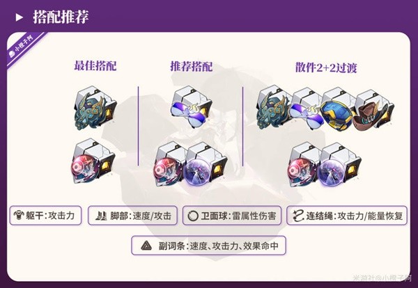 ②追加攻击也是100%基础概率使敌方挂触电debuff,因此效果命中仅需10.3%,副词条只需堆3个词条即可。