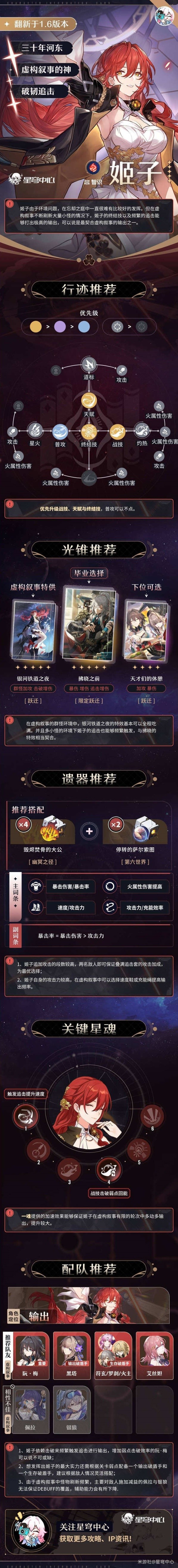 《崩坏星穹铁道》中姬子是一个群体攻击能力很强的角色,那么她的装备该如何选择呢,下面请看“星穹中心”带来的《崩坏星穹铁道》姬子一图流培养指南,希望能够帮助大家。
