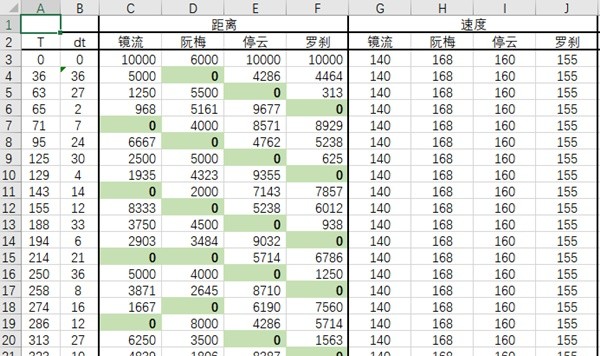 模版示例如下:其中距离为0代表行动回合,第1列是总行动值。