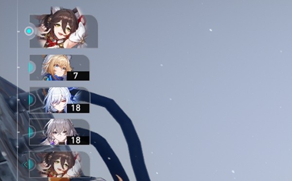 战斗中,左上角的行动序列是一个提示器,它不仅显示了其他人回到起点的顺序,还写明了其他人回到起点还需要的时间(行动值)。