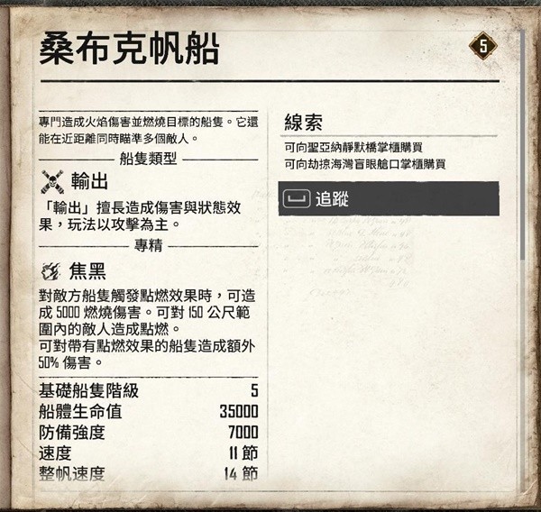 接下来,我们说一下这艘5级船,(下图)这船的图纸是要用5000金币换取,在走私交易所里面,这艘船对于实用性很差。