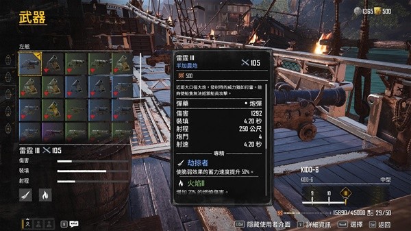 经过这几天的努力,个人已经把目前还算不错的船和武器给凑齐了,恶名等级也满了。(如下图1-5)
