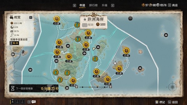 港口不仅能掠夺还可以占领,然后定期去收保护费,这不就是标准的海盗模式? 这里说一下,就是占领领地如果失败了,cd要半小时,记得cd好了就再去尝试占领,占地赚金币,是当务之急。当占领cd还在读条的时候,如果出现藏宝图或洗劫活动,一定要去参加,前期就靠传奇藏宝图过度,洗劫商队的活动是给极品材料,我的炮没有那种材料是做不出来的,而那种多人洗劫商队的活动我都是一个人打,感觉有点困难,所以建议板友们三个人一组组队去打。倘若运气好,路上遇到岸边的沉船一定要开,因为炮弹不够时,就必须靠那挖材料做炮弹。